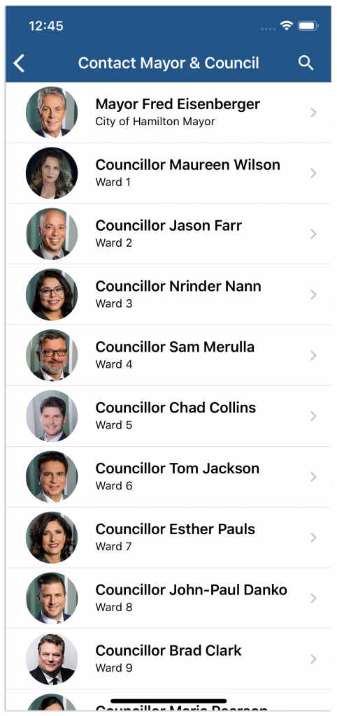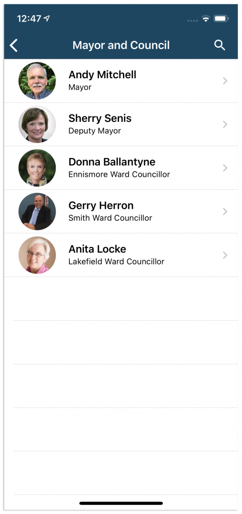 As the name suggests, this module allows us to create a list of contacts in the app. Some municipalities use this to represent their council or staff members. There’s no limitations on the number of contacts you can include. Got a CSV spreadsheet of your members and their contact details? Info Grove can pull from that, too.
