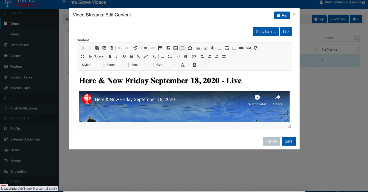 A few months ago we were asked about the capabilities of including live video within Info Grove, so we put it to the test. This post explores some of the possible ways to help organizations include live videos within their Info Grove powered app.